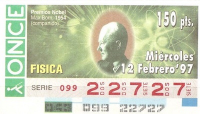 Aici se prezintă un bilet din data de 12 februarie 1997 cu chipul lui Max Born.