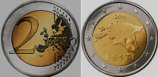 Pe reversul tuturor Monedeleo euro - Estonia este reprezentată harta statului estonian. De observat că monedele de 1 şi 2 euro au harta aplicată în relief, peste suprafaţa monedei, iar celelate au harta scobită, sub suprafaţa monedei.
